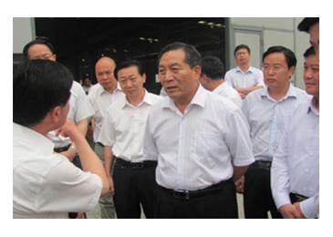 (圖一)2011年11月8日,河南省省委書(shū)記盧展工(右一)在商丘市市委書(shū)記陶明倫(右二)等領(lǐng)導(dǎo)的陪同下視察河南松川汽車公司并與公司總經(jīng)理劉飛(左一)親切交談;